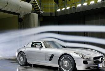 Mercedes SLS AMG en tunel de viento de Mercedes.El coeficiente aerodinámico Cx es la expresión de la resistencia que ofrece un cuerpo a moverse dentro de un fluido por razón de su forma. Al multiplicar el coeficiente de penetración Cx, tomado como número adimensional, por la superficie frontal expresada en m², queda un valor de resistencia aerodinámica SCx, expresado en también m².
