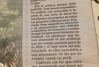 (En voz alta). La habitual y rica pulsión hipocondríaca de Juan José Millás nos vuelve a brindar el cuerpo del delito ya con la autopsia hecha. El punto de partida de hoy es una frase incisiva de Benjamin, una de esas agudas percepciones del más literario de los filósofos y, por así decirlo, el más filosófico —Kafka inclusive— de los escritores, al que siempre hay que volver incluso sin haber ido. Siempre está en nuestros juegos. Hondo y chispeante como —chiste fácil— un buen cava. Lo más curioso de la columna de Millás de hoy, tan precisa y sugerente (esa cuadratura del círculo) como la mayoría de las suyas, es el balbuceo errátil de la penúltima frase, fruto probable de un cambio de intenciones traducido en errata, pero reo feliz también de un sobrevenido ejemplo —preciso, sugerente— de lo que en el artículo se disecciona con la maestría de bisturí que el viejo renegado de La Prospe nos suele regalar: «... modo que me a mí me...» (muy sutil dado).Me complace sobremanera y de manera cierta que el artículo culmine con un homenaje al académico y filólogo Gregorio Salvador, recientemente fallecido. Desde aquí le envío a su hija Aurora, ocasional compañera de juegos editoriales, un cálido recuerdo. Y, si fuera posible, también un beso para Ofelia. El poder de los nombres.