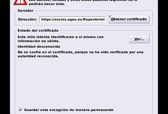 "Esta conexión no está verificadaHa pedido a Firefox que se conecte de forma segura a socios.sgae.es, pero no se puede confirmar que la conexión sea segura.