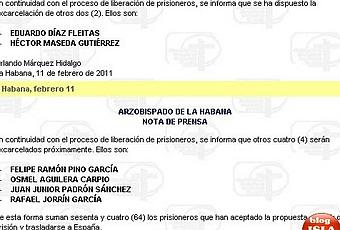 El Arzobispado de La Habana ha anunciado la liberación de otros seis retenidos por actividades contrarrevolucionarias en Cuba, con lo que suman 66, según Nota de Prensa del Arzobispado de la Habana firmada por Orlando Márquez Hidalgo, vocero de la archidiócesis.