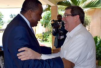 El ministro cubano de Relaciones Exteriores, Bruno Rodríguez, y su homólogo de la República del Congo, Jean Claude Gakosso.