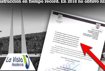 Sin embargo entre enero y marzo del 2019, es decir en tiempo récord La Vista ya recibió 5 licencias de construcción. Estas licencias se otorgaron según la versión de la actual Administración Municipal para beneficiar a habitantes de ese fraccionamiento que no contaban con la certidumbre en la adquisición de sus viviendas, sin embargo quién está obligado a dar la certidumbre legal y contar con todos los permisos es el Fraccionador y que simplemente no lo ha hecho.