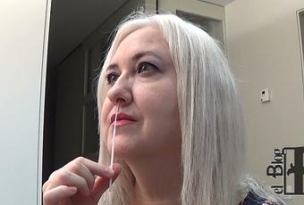 - Saca el bastoncillo sin tocar la punta y toma la muestra dando vueltas en la nariz a unos 2,5cm de la entrada en ambas fosas nasales. Esos 2,5 cm suelen corresponder al tamaño de la parte blanda del bastoncillo. Procura coger bien la muestra para que el resultado sea fiable. Puede ser un poco molesto pero vale la pena hacerlo bien.