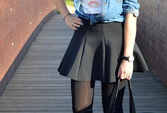 Jacket Leather/Cazadora de cuero: Mango (new) (similar here)Denim Blouse/Camisa vaquera: Pull and BearShirt/Camiseta: SheinsideSkirt/Falda: ZaraBoots/Botas: StradivariusWatch/Reloj: Daniel Wellington (similar here)Bracelet/Brazalete: GlamuletBag/Bolso: Bissu (new) (similar here)
