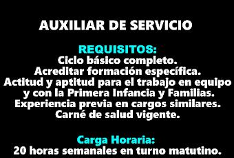 INSCRIPCIONESInteresados enviar C.V al Mail: [email protected] Con el asunto: AUXILIAR CAIF LOS CERRILLOS.Inscripciones hasta el 23/12/2024