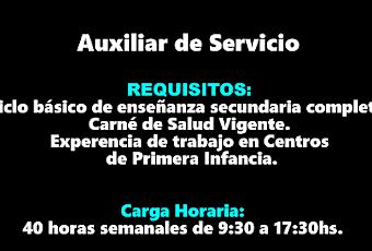 Lea con Atención !!Al Final de la Publicación Está el Acceso al Registro...Brindamos la Información Como nos Gusta Recibirla...Inscripciones hasta el 9/1/2025Se valorará:Experencia en cargos similares.Cursos de auxiliares de servicio, ticanería y cocina.Experencia y conocimiento de Plan CAIF.