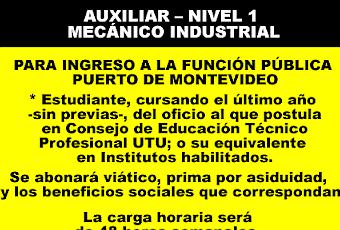 REQUISITOS EXCLUYENTES:§ Ser ciudadano/a natural o legal en las condiciones establecidas en la Constitución de la República.§ Ser mayor de 18 años de edad a la fecha de cierre de la inscripción.§ Estudiante, cursando el último año -sin previas-, del oficio al que postula en Consejo de Educación Técnico Profesional UTU; o su equivalente en Institutos habilitados.§ Constancia de haber sufragado en la última elección (en caso de corresponder).§ Las personas que se encuentren residiendo en ciudades de Departamentos limítrofes, podrán inscribirse siempre que la distancia con el Puerto de Montevideo, no supere los 50 (cincuenta) km.