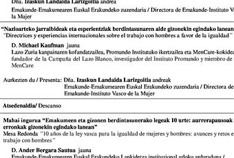 Mis compañeros de Gizonduz han organizado unas jornadas que tienen muy buen aspecto con motivo del décimo aniversario de la aprobación de la ley vasca de igualdad de mujeres y hombres.