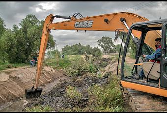 La limpieza y desazolve se realizan con apoyo de equipo y maquinaria especializada, como retroexcavadoras y camiones de volteo, así como diversas herramientas que facilitan el retiro de maleza y arbustos en ambos lados de los cauces.