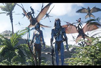 Cameron se mueve como pez en el agua en las secuencias marinas y aéreas. Se nota que el director canadiense tiene una visión del espacio super controlado y sabe hacer lucir sus mundos digitales con una cuidada puesta en escena y un manejo de los movimientos de cámara de lo más innovadores y frescos. Narrar la trama también es tarea fácil para él, controlando bien las secuencias con varios personajes y una lectura de la trama a través de los protagonistas y sus fuerzas antagónicas. La dirección de actores es clave en una película tan digital como esta. Los actores interpretan frente a una pantalla verde la mayor parte del tiempo, con otros actores que serán recreados digitalmente, por lo que hacerles creer la historia que están contando sin verla es esencial. Por suerte, Cameron es un maestro en eso y se nota que ha sabido moverlos a todos por donde ha querido a la vez que les ha ayudado a comprender a sus personajes y sus motivaciones. El único pero de su dirección es la incapacidad de síntesis que se percibe en toda la cinta. Al ser su saga, su hijo, parece no querer cortar ni eliminar escenas que son prescindibles, y eso juega en su contra.