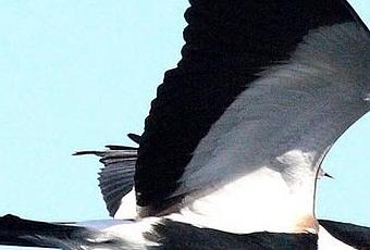 EN VUELO SE DISTINGUE SU PECHO NEGRO SOBRE EL FONDO BLANCO