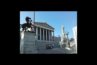 hasta llegar al ringstrasse. A ambos lados se abrían parques con arboledas de muchas tonalidades rodeando una cantidad notable de palacios, palacetes e inmensas estructuras plenas de estatuas y detalles. Muy cuidadas, impresionantes. Mi abuela diria que era mucho trabajo para limpiar, entre otras cosas. Vimos el ayuntamiento con sus torres puntiagudas, sus arcadas dobles y sus balcones adornados con flores rojas, la sede del parlament Austriaco - una especie de partenon con figuras