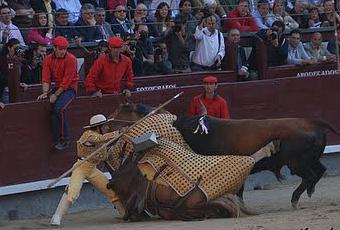 Entorno los ojos y todavía siento en el cogote, tibio y agrio como leche descompuesta, el bufido de Aviador, ese titán colorao, fruto de la tierra pródiga de Comeuñas y de la ciencia serena de los Cuadri, embestir con la misma fiereza de siete ganaderías de las "güenas" juntas. El hombre al que le tocó sobrevivir a la cólera del Toro sin cuento y a la penitencia de la casta, fue Alberto Aguilar, el matador de toros con cara aniñada y cojones asaltillados . Pídele a Dios que no te toque un toro bravo, dicen que dijo Belmonte. Aunque bravo, lo que se dice bravo, este no era, pero encastado, como pocos veremos este año. Se llevó tres puyazos duros y secos, los tomó con la misma cabalidad que sus dueños, sin una protesta, arreando serenamente, sin pegar un mal derrote, sin los descastados sonidos del mugido y el estribo, romaneando y como una bomba nuclear, desintegrando por los aires al acorazado de picar. No hubo cuarta vara porque cantó la gallina, aunque por su poder podría haber tomado un par de ellas más. A esas horas ya se sabía que el redondel tenía un sólo dueño, y que el triunfo del lidiador no era cuestión de número de despojos ni de puertas grandes, sino de no verle las orejas al Doctor García Padrós e irte al hotel por tu propio pié. Mal que bien, Aguilar lo consiguió, magullado y herido en el orgullo, pero triunfador. Porque la verdad de la Fiesta volvía a sus raíces, al riesgo vital, y no a ese contubernio vanguardista que consiste en alternar naturales con derechazos sin ningún porqué. Mis respetos para Aguilar, que salió de forma honrosa de la cita con el Toro.
