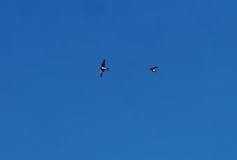 Los bandos de avión común tienden a posarse mucho menos que los de golondrina y son bastante más ruidosos. En Gozón se pueden formar concentraciones de este tipo por cualquier punto del concejo, que no suelen ser demasiado numerosas. Por ejemplo hace un par de días localicé una de 26 en Vioño y otra de 35 en Bocines.