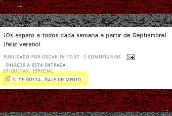 Resulta que hace unos días instalé una nueva funcionalidad en el blog que consiste en un pequeño enlace al final de cada post para que, el que así lo desee, pueda compartir la tira que le apetezca enmenéame automáticamente. Aquí os lo muestro.