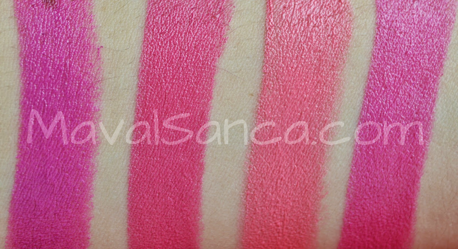 Su pigmentación me ha sorprendido muy gratamente. Cómo véis los colores son intensos y vibrantes y el acabado que dejan es uniforme sin parchearse o cuartearse.Su comodidad en la aplicación es sorprendente. Son increiblemente cremosos.Sin embargo no se escurren ni se escapan por las grietas de la piel, cosa que suele pasar con los labiales muy cremosos.De la duración aun no puedo hablar mucho porque no los he probado suficiente sobre mis labios.Pero debo decir que cuando hice los swatches me costó retirarlos y tiñieron la piel, sobretodo los más intensos.Pigmentation has surprised me pleasantly.How we see the colors are intense and vibrant leaving an uniform finish without patching or cracking.Its comfort in the application is striking. They are incredibly smooth.However no drain or escape through cracks in the skin, which often happens with very creamy lipsticks.I can't talk yet about its duration because I've not tried enough on my lips.But I must say that when I remove swatches the lipstick colored my skin, especially the most intense tones.Orchid PetalUltra Colour IndulgenceAVON
