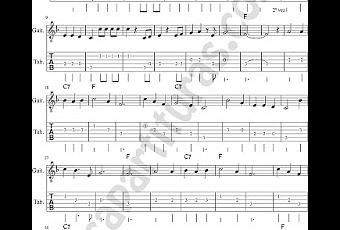 Tablatura de Guitarra del Villancio Popular Ay del Chiquirritin en clave de Fa con acordes