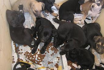 Anoche fueron abandonados estos 12 cachorros en la puerta de la protectora. Deben tener unos 2 meses y cuando sean adultos serán de tamaño mediano (todavía no puedo especificar).