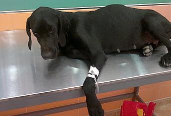 No sabemos el diágnostico definitivo pues se ha quedado ingresada. Parece que ha recibido un golpe o algo peor. Además, está esperando cachorros,...le han hecho pruebas y han decidido operarla. Ahora mismo estará en quirófano...tiene tambien una fuerte anemia.