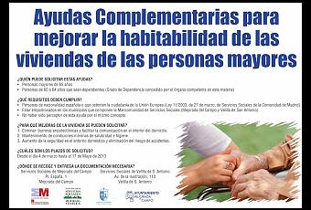Entre el 4 de marzo y el 17 de mayo de 2013, las personas mayores de 65 años y las personas de 60 a 64 años que sean dependientes podrán solicitar ayudas para mejorar las condiciones de habitabilidad de sus viviendas. Las ayudas se tramitarán a través de la Mancomunidad de Servicios Sociales Mejorada-Velilla.