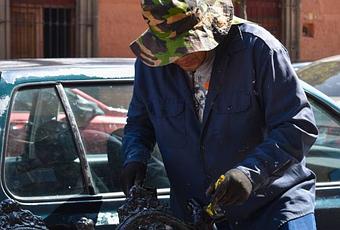 San Luis Potosí. Cuadrillas de trabajadores de la Dirección de Servicios Municipales del Gobierno de la Capital están llevando a cabo la reparación y renovación de las bancas ubicadas en la calle Mariano Arista, en el corazón del Centro Histórico de San Luis Potosí.