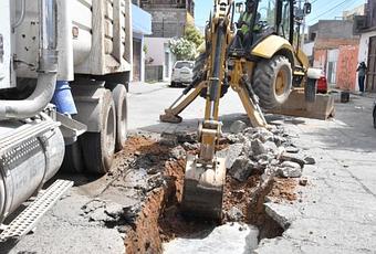El Ayuntamiento de Soledad de Graciano Sánchez, a través de la Dirección de Infraestructura Municipal, inició los trabajos de reparación de un socavón en la calle Camino Real a Rioverde, en la colonia Villas del Potosí, donde se detectó un colapso ocasionado por una fuga de drenaje, además de realizar labores de desazolve en la red que afectaba a decenas de familias de la zona.