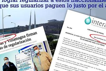 En el caso de Villa Magna, se habían dado igualmente solo promesas y el 2 de noviembre del 2020 se informó que por fin se había firmado el acuerdo para la regularización de 3,800 tomas de agua potable e igual número de descargas sanitarias para 3,753 viviendas de tipo residencial, 123 locales comerciales y 4 tomas de otros usos.