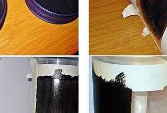 Primero, los tarros, han de estar bien limpitos. Después, con la cinta de carrocero, marqué la zona a pintar. La pinté, dándole varias capas, dejando que todas se secaran. Hice lo mismo con las tapas.