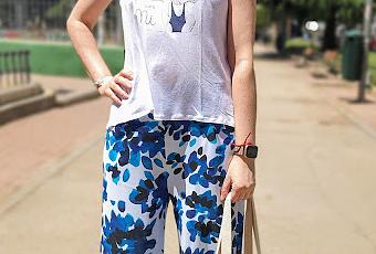 Pantalones de moniquilla, me encantan, son tan cómodos, camiseta de tirantes de Esencia Custome, pendientes de Miss Bijoux y bolsa de Silvia Calles de La Antigua.