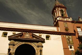La torre de la Iglesia de Nuestra Señora de la O, en la trianera Calle Castilla, es digna de un museo cerámico como lo muestran los siete paneles azulejísticos que podemos ver (los más bajos) o podemos intuir (los más altos).