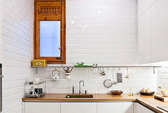 Otro recurso muy utilizado es revestir sólo la zona más sucia de la cocina, es decir unos 50cm desde la encimera y luego pintar la pared como más nos guste y del color que mejor nos combine.