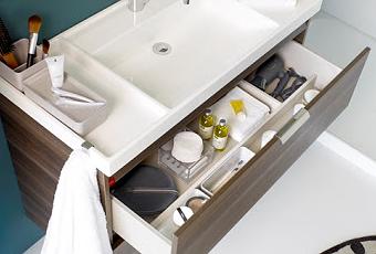 B-BOX es una colección de mobiliario con lavabo pensada para aprovechar al máximo el espacio, manteniendo una estética ordenada y armónica. Los lavabos tienen una zona semi-seca con espacio suficiente para su uso cotidiano y otra diseñada especialmente para dejar cómodamente el jabón, los productos cosméticos, los útiles del afeitado, la pasta y cepillo de dientes o el reloj y las joyas….
