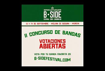 Ya se conocen los finalistas del concurso de bandas del B-Side de este año, un total de 20 finalistas para la segunda edición. Ante su edición 2024 del concurso de bandas del B-Side encontramos a los finalistas que pueden optar a estar en el B-Side.Este año el B-Side Festival 2024 se realizará entre los días 13/9 y 14/9 en Molina de Segura (Murcia) y ante su segunda edición del concurso de bandas ya se conocen a los 20 finalistas que pueden ser parte. Es una selección de bandas nacionales que se pueden descubrir en su web.