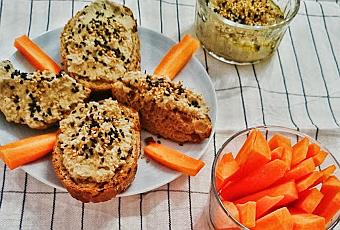 Ingredientes· 1 berenjena· 1 cucharada de tahin· 1 diente de ajo· 1 cucharada de zumo de limón· 1 cucharadita de comino molido· 1 pizca de sal· Aceite de oliva virgen extra· Semillas de sésamo negroElaboraciónComenzamos lavando la berenjena y posteriormente, hacemos pequeños cortes con el cuchillo en distintas zonas, sin llegar a trocear la berenjena.Mientras, precalentamos el horno a 180oC. Ponemos la berenjena en una bandeja de horno y la metemos al horno 40-45 minutos, va a depender del tamaño de la berenjena.Una vez asada la berenjena, la dejamos enfriar a temperatura ambiente. Mientras, en un almirez, machacamos el ajo, una pizca de sal, el tahin y el comino molido, hasta que obtengamos una pasta, a la que añadiremos el zumo de limón. Mezclamos bien todo el conjunto y reservamos.A continuación, partimos la berenjena y sacamos la carne con ayuda de una cuchara y la añadimos al alimrez. Llegados a este punto, podemos mezclar con batidora que nos va a dejar una textura homogénea o simplemente vamos mezclando la berenjena con el preparado anterior, sea como fuere finalmente debería quedar un puré mas o menos homogéneo que pondremos en un cuenco. Como decoración añadiremos un chorrito de aceite de oliva virgen extra y unas semillas de sésamo negro.Ya estaría listo para degustar, en este caso lo hemos empleado como snack acompañando a unas tiras de zanahoria cruda. Y vosotros, ¿cómo vais a acompañar esta rica receta?Me despido hasta el próximo post :)Realizado por Tamara Valencia Dueñas.