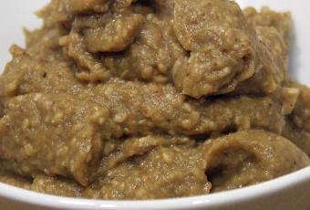 Batimos con una batidora. Cuánto más tiempo estemos mejor, ya que así las semillas de sésamo quedaran más integradas en la pasta.