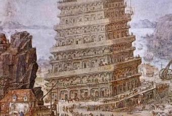 Anónimo: La torre de Babel, miniatura del «Breviario Grimani», ss. XV-XVI,
