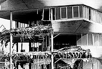 Imagen 1: Demolición de «La Pagoda» de Fisac (fuente: n´UNDO) Imagen 2: Mesa redonda de la sesión «La arquitectura española desde la Guerra Civil». De izquierda a derecha: Federico Soriano, Maria Teresa Muñoz, Mariano Bayón, Antonio Vázquez de Castro, Eduardo Mangada, Izaskun Chinchilla y Zuloark (fuente: Club de Debates Urbanos).