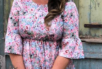 El vestido me encanto desde el minuto uno por su espalda. El lazo le da un toque lady y de muñeca que me chifla. El estampado de flores en azul bebé y rosa completa el vestido y lo hace hiper femenino.