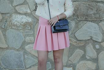 I have always said I like pink than blue, with this skirt I didn´t think, it had to be for me! With the good weather I wear for the first time some new purchases of the season, is a romantic and spring outfit. The sweater was love at first sight that I show you on Instagram here, bag and heels you have seen before. Hope you like as me! xoxo