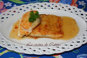 8 lomos de bacalao desalado50 gr de harinaun vasito de mieluna cucharada de vinagreun vaso de aceite de oliva