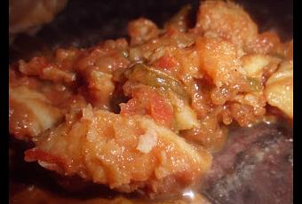 Un buen bacalao con una buena salsa de tomate, cebolla y pimiento.