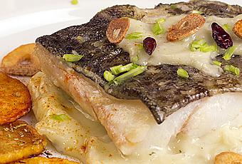 - Dejamos que temple el aceite y a baja temperatura confitamos el bacalao. Primero por la piel arriba y después por el otro lado. Aproximadamente durante 3-4 minutos por cada lado. Reservamos.