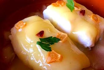 - Cuando la salsa este ligado puedes poner el bacalao encima, con sus ajitos, trocito de guindilla y un pelin de perejil para decorar.