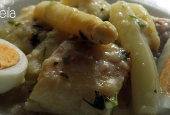 Para hacer esta receta solo tuve que recordar lo que comimos en nuestro ultimo viaje con mis padres, visitando a nuestros familiares. Me sorprendio mucho que el caldo en el que se conservan los esparragos, se lo bebieran, a mi la verdad... me dio un poco de grima y ni lo probe, pero el plato de bacalao que os presento... mmmm el plato quedo impoluto.