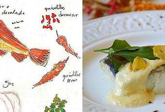 Una vez templado el aceite se retiran las tajadas de bacalao con la espumadera, escurriéndolo bien. Empezar a ligar el pil pil en una cazuela de barro y con un colador con el “agua” que suelta el bacalao escurrido. Ir añadiendo poco a poco el aceite hasta ligarlo completamente. Para que entendáis mejor este último paso (el más importante y clave del plato) os dejo con este vídeo de David de Jorge, el que a partir del minuto 22;38 se puede apreciar esta receta al completo.