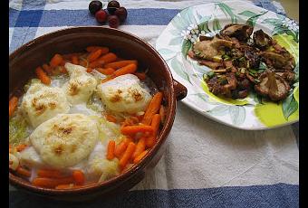 Ya verán que es un plato sencillo, aunque no me agrada mucho lo de la mahonesa encima del pescado y caliente pero está bien probar cosas nuevas. Cogemos zanahorias baby (pueden ser congeladas), cebolla en rodajas y un chorretón de aceite de oliva, poco. Metemos unos 10 minutos en el horno previamente calentado. Acto seguido añadimos el bacalao y le ponemos la mahonesa, en mi caso usé una casera hecha por mí (ver en salsas). Mantener unos 5-7 minutos a 180º