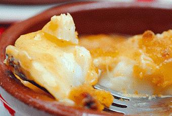 Introducimos la fuente en el horno, bajo el gril, colocando la rejilla en la parte superior. Una vez dorada la superficie (5-6 minutos), retiramos del horno y servimos inmediatamente.