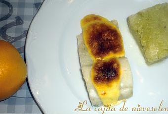 Cubrimos los lomos con la mayonesa de naranja y espolvoreamos con un poco de queso rallado. Gratinamos 5' y servimos inmediatamente.