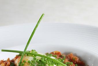 - Puedes perfumar con algunas hierbas que vayan bien con el tomate. Puedes probar con albahaca o, por ejemplo, estragón, que le da un puntito picante y anisado. Yo le he puesto cebollino.