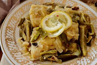 Y si las torrijas del otro día son típicas de estas fechas ¡que decir del bacalao! No se porque está tan unido a la cuaresma, cuando es un producto que se come todo el año, al menos por mi tierra, que hasta viajamos al extranjero para comer bacalao, bien es verdad que este extranjero, está ahí al lado y si bien es otro país, los portugueses del Norte y los gallegos nos sentimos mutuamente en casa.Este bacalao lo cociné ayer con la receta "a ver que sale" y con lo que había en la despensa que eran pimientos verdes y alcachofas, no seguí ninguna receta, lo hice a mi aire y el resultado no nos gustó, nos encantó y la repetiremos más de una vez ¡seguro!